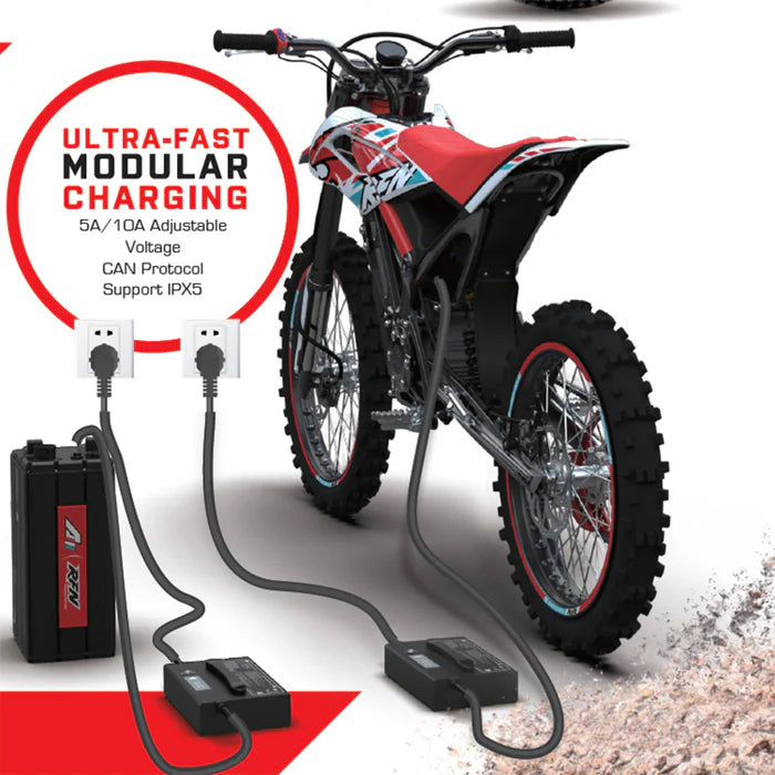 The 2025 Apollo RFN Rally Pro is a cutting-edge electric dirt bike engineered for competitive performance and advanced off-road handling. With a lightweight alloy frame, powerful 72V system, and advanced controller settings, the Rally Pro delivers high acceleration, adjustable power modes, and rugged suspension built for enduro and motocross riders alike.
